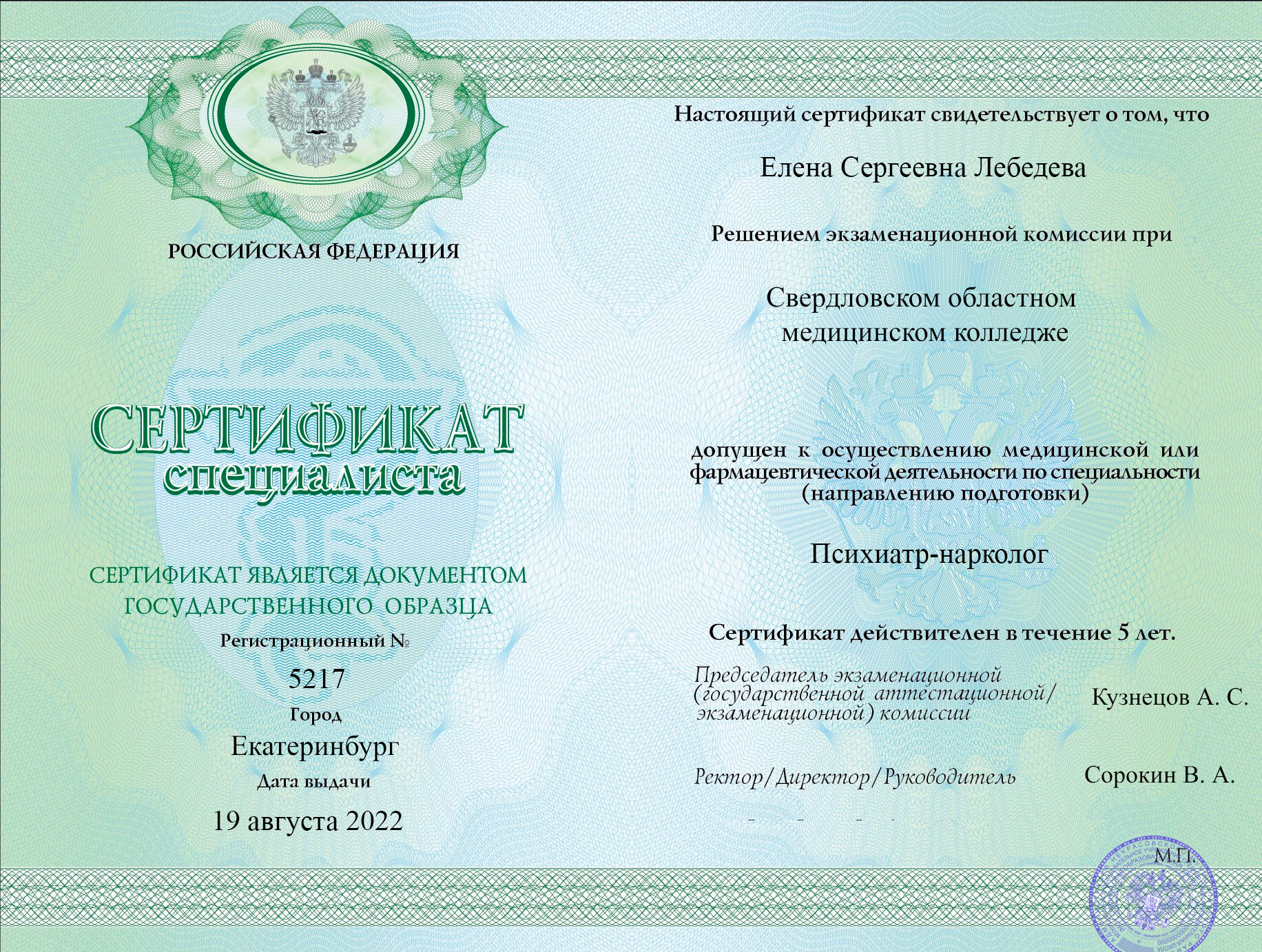 Елена Сергеевна Лебедева врач нарколог клиники доктора Стукаловой в Селидово